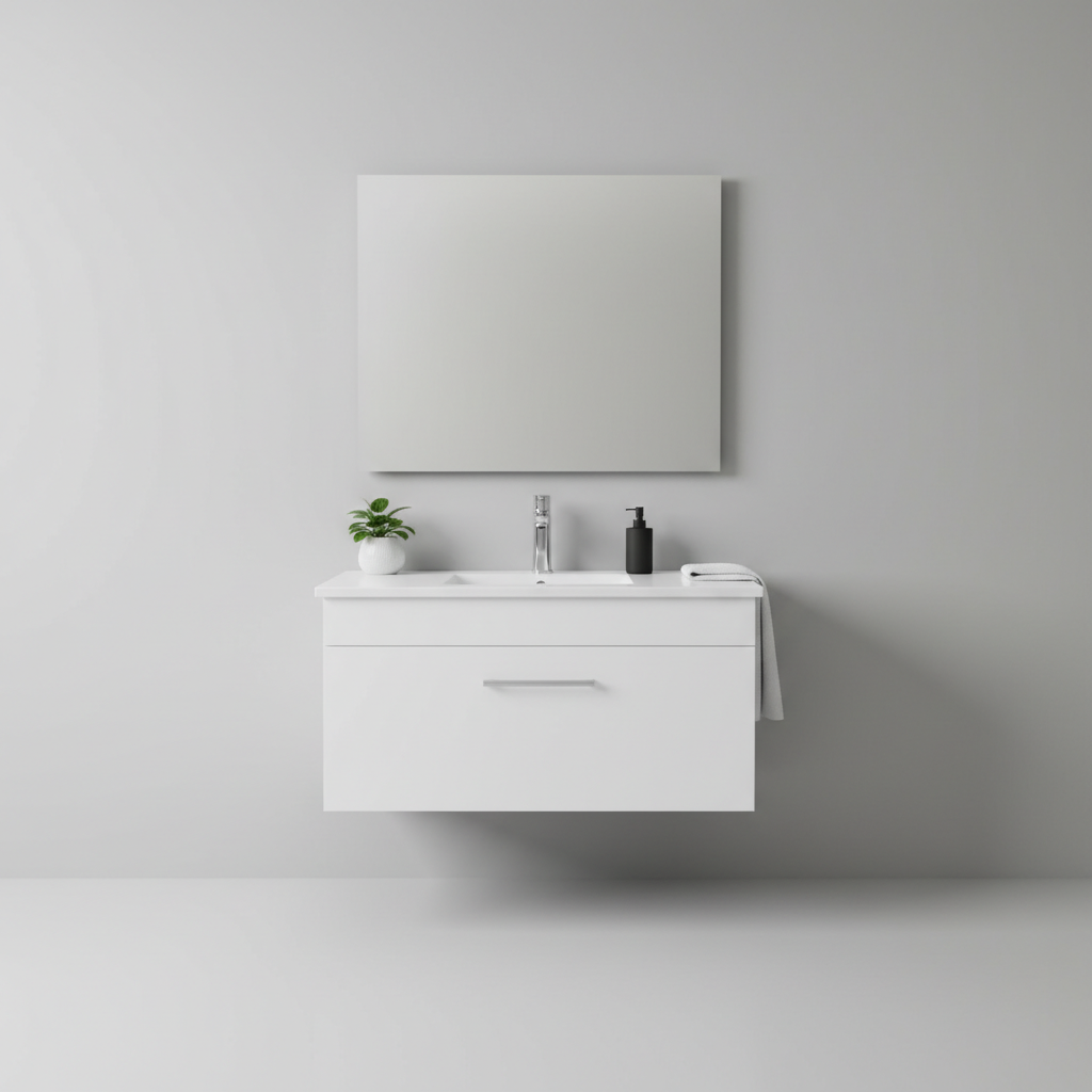 Le Glossy Slide se distingue par sa finition stratifiée qui apporte luminosité et modernité à la salle de bain.